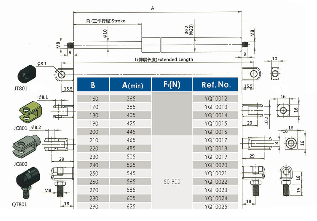 注:由于氣彈簧是非標(biāo)準(zhǔn)的,以上僅為型號的一部分。我們可以根據(jù)客戶的要求定制。