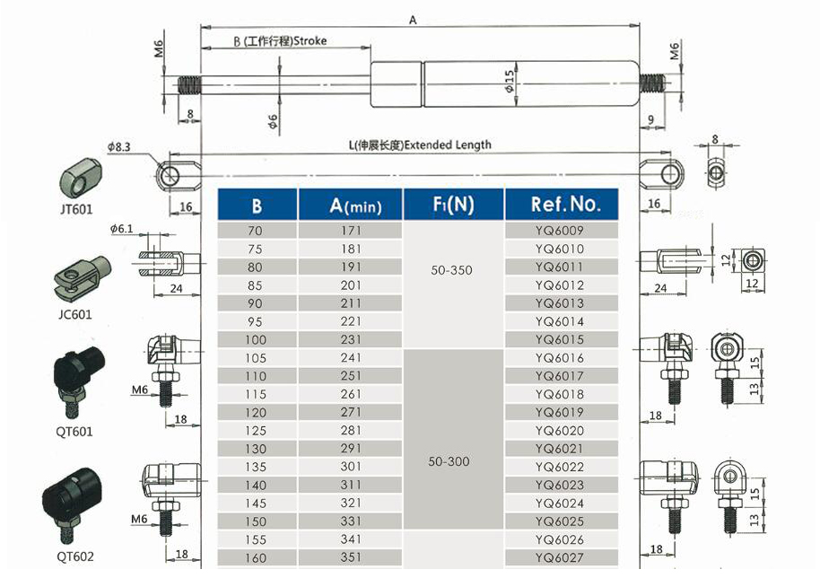 注:由于氣彈簧是非標(biāo)準(zhǔn)的,以上僅為型號的一部分。我們可以根據(jù)客戶的要求定制。