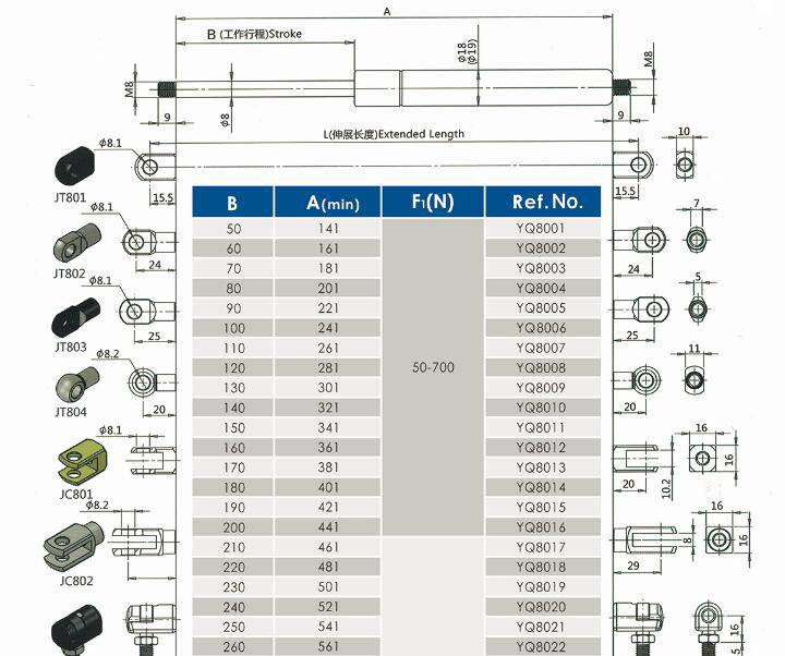 汽車氣彈簧-舉升氣彈簧YQ8/18-2